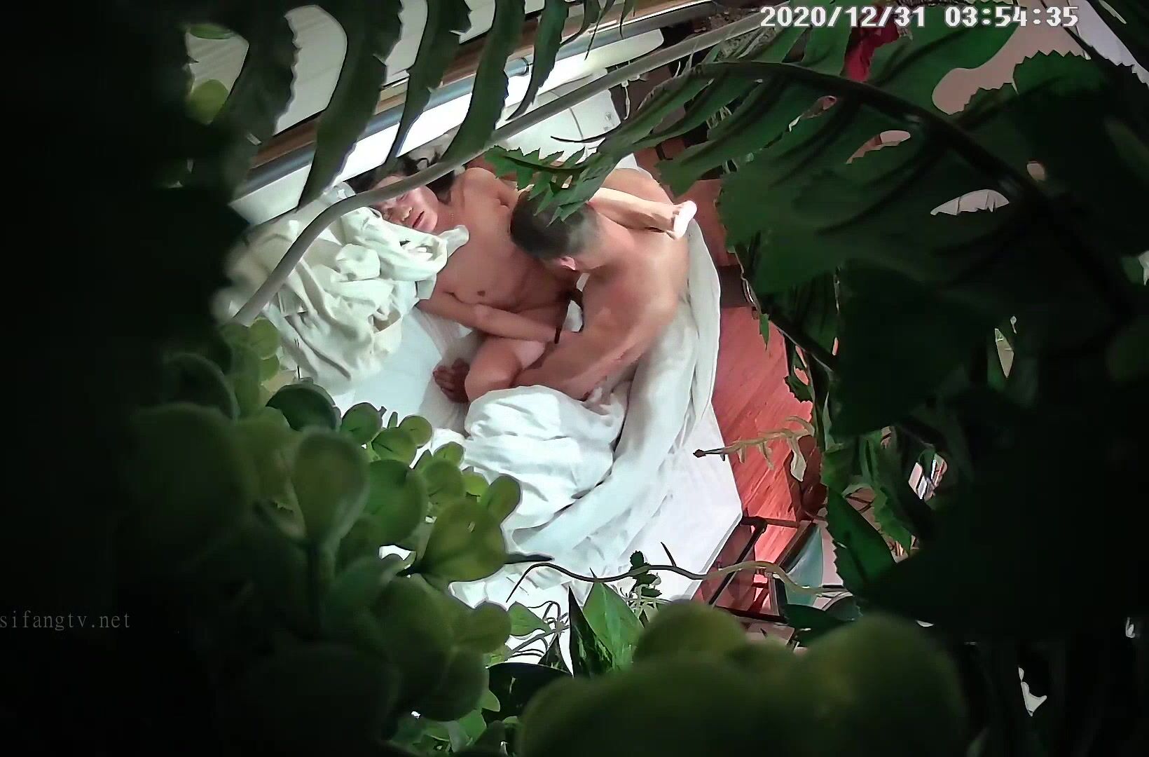 主题酒店绿叶房偷拍大叔跨年夜吃宵夜灌醉嫩妹子开房各种玩弄草逼