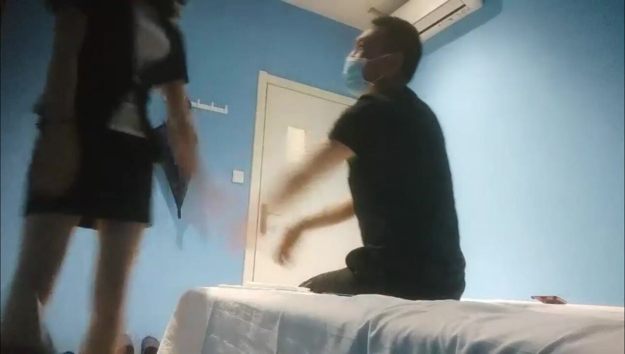 老公带着性欲旺盛的老婆到酒店让两同事干她自己在旁边拍摄指挥