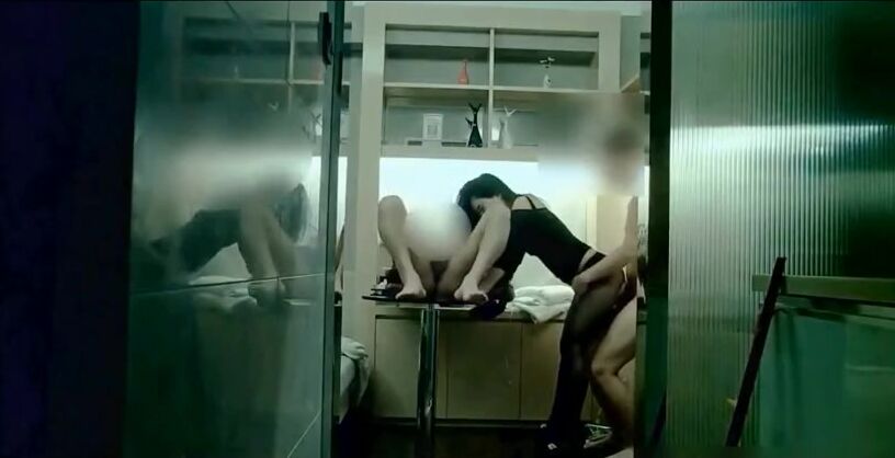 91名人协同哥们3P女神级别极品外围模特黑丝长发颜值高前后双洞齐开各种啪啪两根屌都不闲着这钱赚的不容易啊