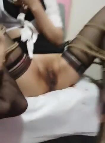 白丝女仆装鸭子坐家中自慰